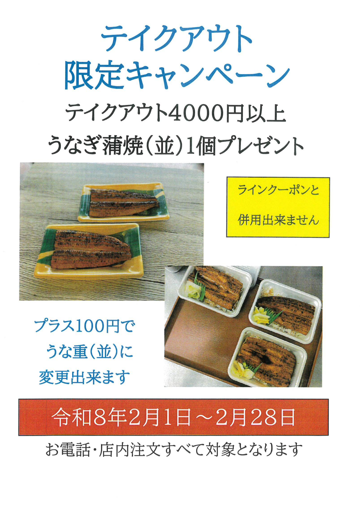 4000円以上でうなぎ蒲焼を1個プレゼント