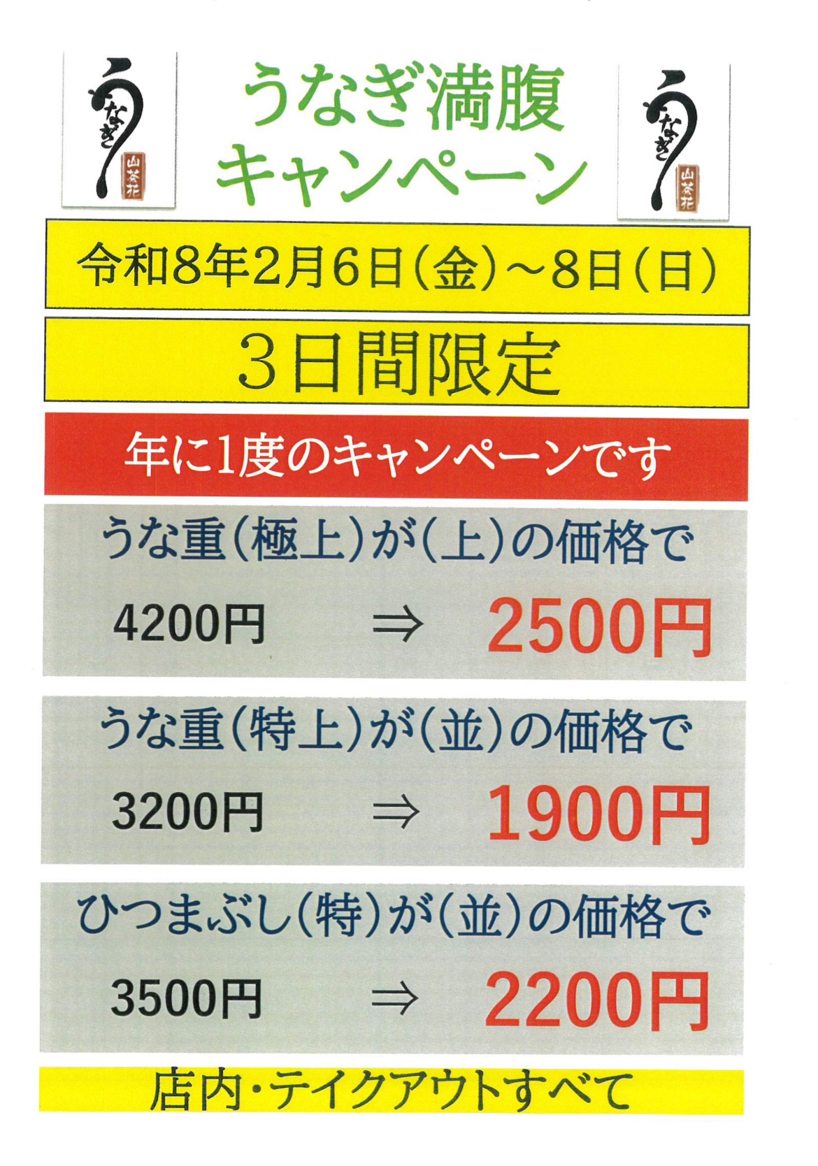 | 蒲焼定食(特) | 3,200円