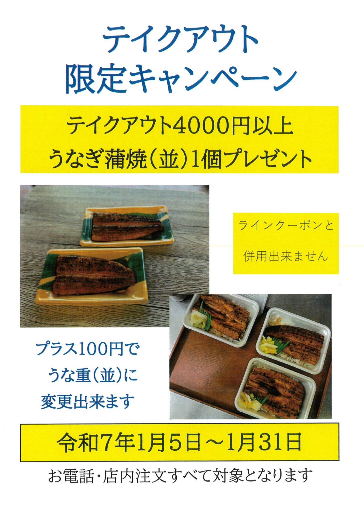 4000円以上でうなぎ蒲焼を1個プレゼント